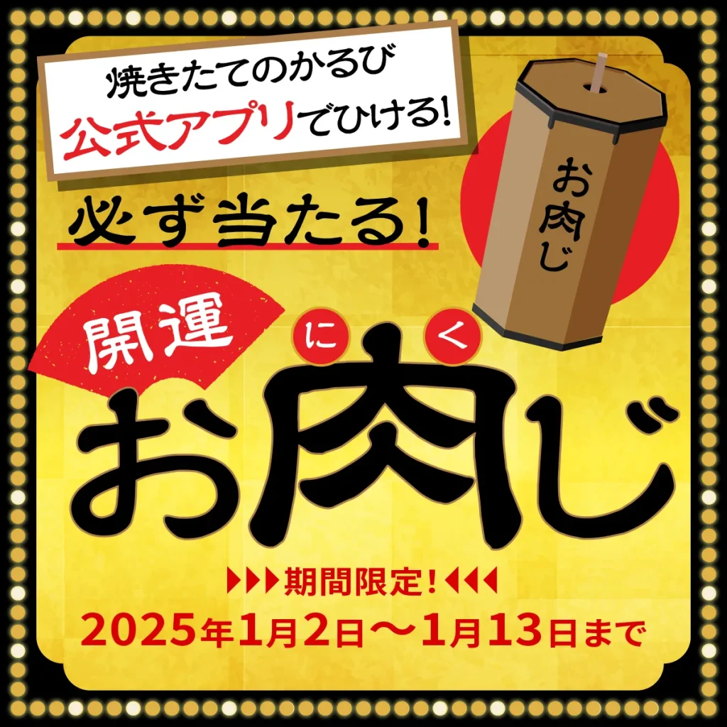 日頃の感謝を込めて、1月2日〜1月13日に毎日1回、焼きたてのかるび公式アプリ内でくじを引ける「お肉じ」を実施します!