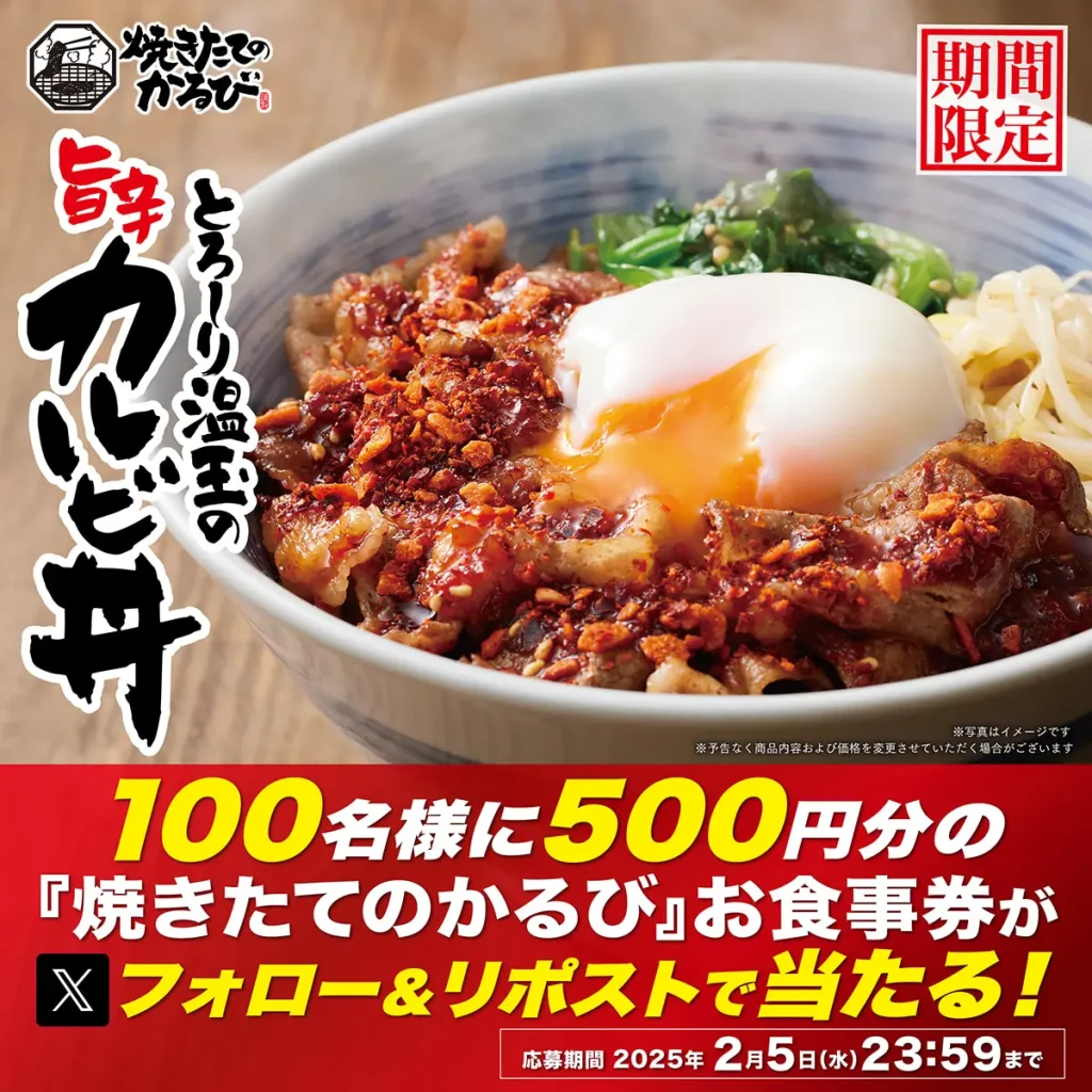 とろ~り温玉の旨辛カルビ丼販売記念フォロー&リポストキャンペーンを開催します!