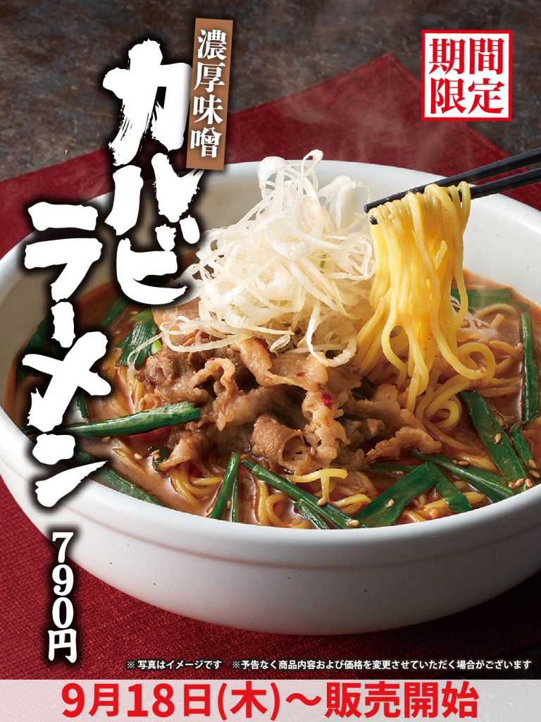 9月18日(木)より期間限定「濃厚味噌 カルビラーメン」が販売開始!