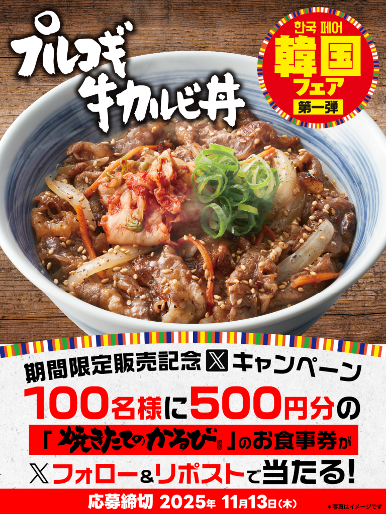 2025 11.7 「韓国フェア第一弾」販売記念キャンペーン開催! 🍖🍚「韓国フェア第一弾」販売記念キャンペーンを開催します🎉😊 \参加はこちら/ https://x.com/yakitate_kalbi?utm_source=sns&utm_medium=hp&utm_campaign=x 100名様に抽選で「アプリクーポン500円」をプレゼント🎁 皆様のご参加お待ちしております✨