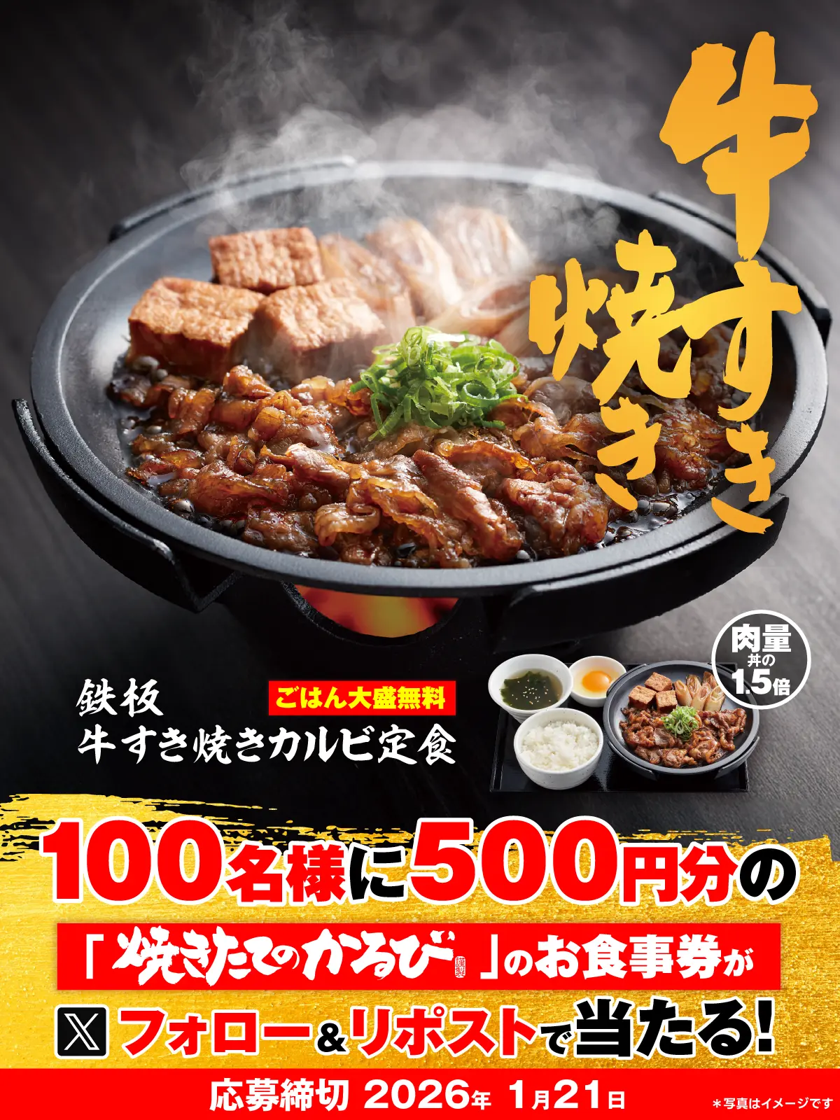 🍖🍚「牛すき焼きカルビ定食販売記念」フォロー&リポストキャンペーンを開催します🎉😊